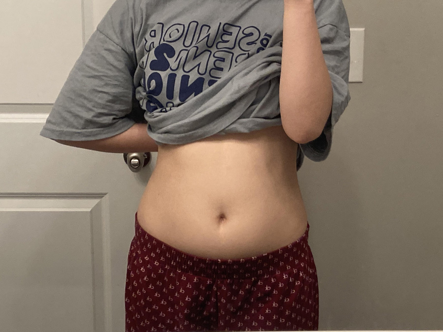 Week three: I wore a fitted shirt to my nephew's birthday dinner. I sat down at the restaurant without thinking about it. I ate the pasta.